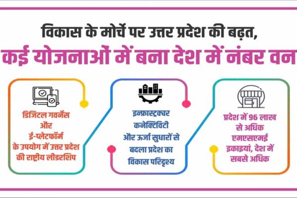विकास के मोर्चे पर उत्तर प्रदेश की बढ़त, कई योजनाओं में बना देश में नंबर वन  आवास, पेंशन व स्वच्छता में रिकॉर्ड प्रदर्शन से सामाजिक योजनाओं को नई गति कृषि, उद्योग व निवेश में अग्रणी भूमिका से बनी मजबूत अर्थव्यवस्था की तस्वीर इन्फ्रास्ट्रक्चर, कनेक्टिविटी व ऊर्जा सुधारों से बदला प्रदेश का विकास परिदृश्य डिजिटल गवर्नेंस…