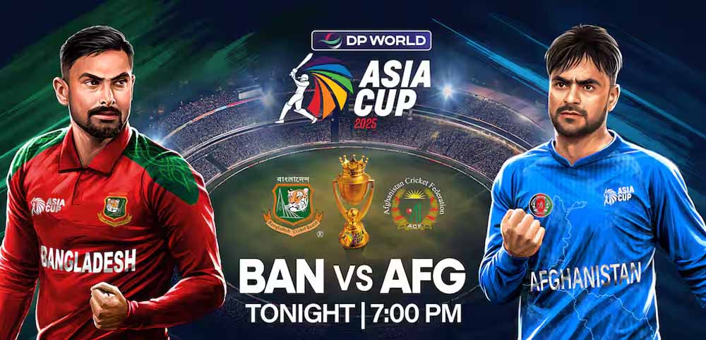 आज अफगानिस्तान और बांग्लादेश के बीज एशिया कप 2025 का नौवां मैच खेला जाएगा। दोनों टीमों की रात आठ बजे (भारतीय समयानुसार) से अबु धाबी के शेख जायद स्टेडियम में टक्कर होगी। ग्रुप बी का हिस्सा राशिद खान की अगुवाई वाली अफगानिस्तान टीम टूर्नामेंट में दूसरी बार मैदान पर उतरेगी और सुपर-4 का टिकट कटाने पर नजर होगी। उसने पहले मैच में हॉन्ग कॉन्ग को 94 रनों से रौंदा था। वहीं, लिटन दास की कप्तानी वाली बांग्लादेश टीम ग्रुप चरण का अपना तीसरा और आखिरी मैच खेलेगी। बांग्लादेश को अगर आज हार मिली तो टूर्नामेंट से पत्ता कट जाएगा। उसके खाते में दो मैचों में सिर्फ दो अंक हैं। बांग्लादेश को अपने पिछले मैच में श्रीलंका के हाथों 6 विकेट से हार मिली थी।