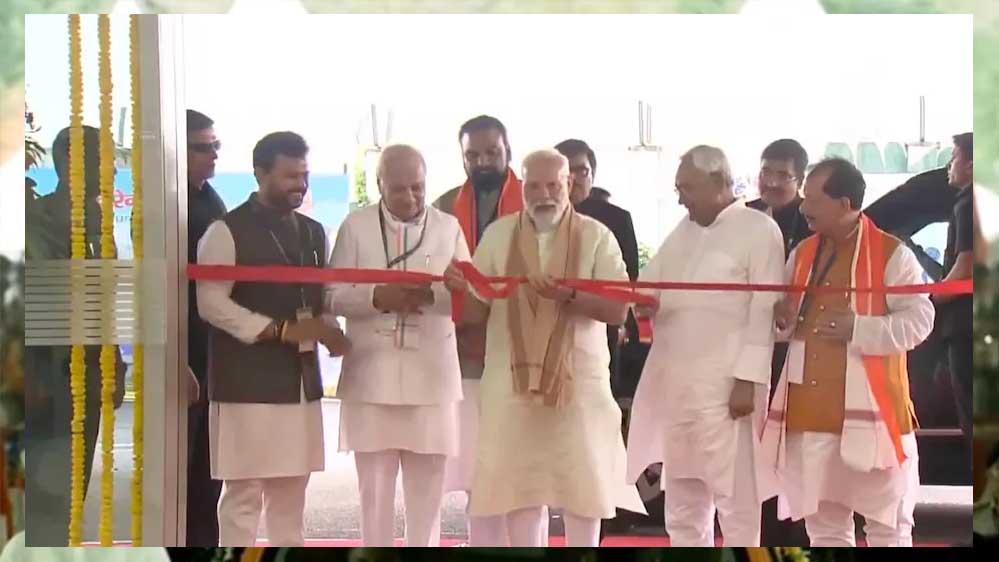 एयरपोर्ट के टर्मिनल भवन के उद्घाटन के दौरान प्रधानमंत्री मोदी के साथ बिहार के मुख्यमंत्री नीतीश कुमार, डिप्टी सीएम विजय सिन्हा और सिविल एविएशन मिनिस्टर राम मोहन नायडू भी साथ मौजूद रहे.