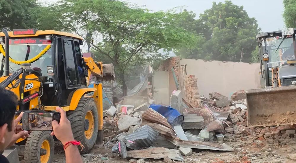 -भूखंड क्रमांक 63 : अनीशा बी, अब्दुल नासिर, उवैस शेख, आयशा बी, फेमिदा के 3 निर्माणों पर बुलडोजर चलाकर तोड़ा गया।
