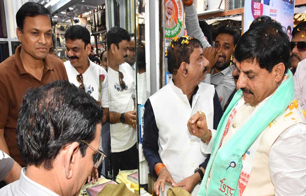 मुख्यमंत्री डॉ. यादव ने सोमवारा क्षेत्र की पुलिस चौकी से दीपाली साड़ी हाउस तक बाजार में पैदल भ्रमण कर दुकानों में जीएसटी बचत उत्सव के स्टीकर्स चिपकाए। दुकानदारों एवं ग्राहकों से आत्मीयतापूर्ण चर्चा की। जीएसटी दरों में कटौती होने से महिलाएं सबसे अधिक खुश नजर आईं। उन्होंने मुख्यमंत्री डॉ. यादव को मिष्ठान खिलाकर अपनी खुशी जाहिर भी की। मुख्यमंत्री ने विभिन्न प्रतिष्ठानों से स्वदेशी वस्त्रों और परिधानों की खरीददारी की। मुख्यमंत्री डॉ. यादव ने बाजार में खरीददारी करने आए ग्राहकों और आमजनों से भी आत्मीय भेंट की। बाजार में पैदल भ्रमण एवं भेंट के दौरान दुकानदार और आमजन ने मुख्यमंत्री का पुष्पवर्षा कर स्वागत एवं अभिनंदन किया।