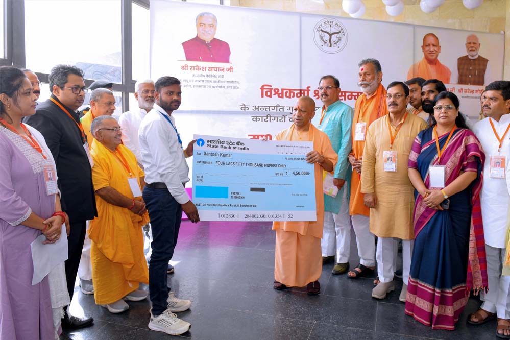 सीएम योगी ने विश्वकर्मा श्रम सम्मान योजना के अंतर्गत लाभार्थियों को प्रदान किया टूल किट