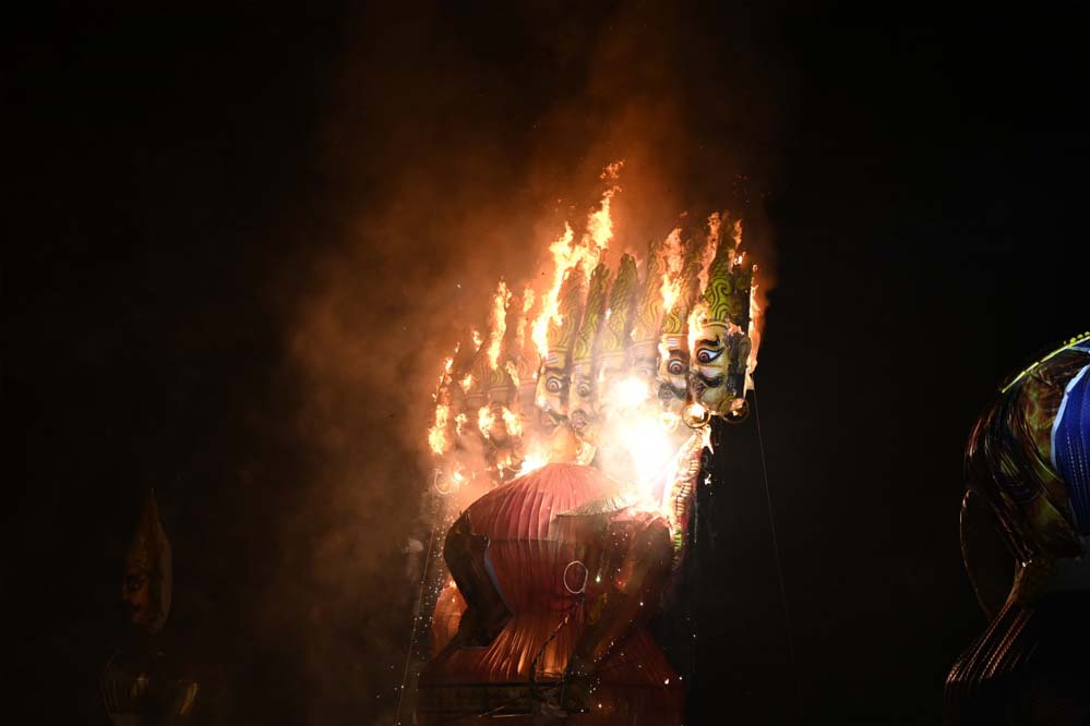 समारोह में 103 फीट ऊँचे रावण के पुतले का दहन इस आयोजन का मुख्य आकर्षण रहा। रंगीन आतिशबाजी और भव्य प्रस्तुति देखने हजारों लोगों की भीड़ मैदान में उमड़ी। इस अवसर पर अनेक जनप्रतिनिधि, सहित गणमान्य नागरिक उपस्थित रहे।