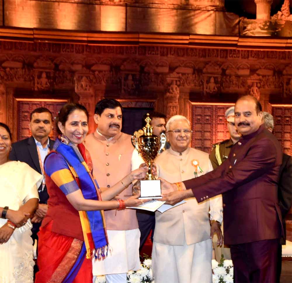 राज्यपाल श्री मंगुभाई पटेल एवं मुख्यमंत्री डॉ. मोहन यादव द्वारा रविंद्र भवन में आयोजित लोकरंग कार्यक्रम के दौरान, गणतंत्र दिवस के अवसर पर भोपाल के लाल परेड मैदान में आयोजित राज्य स्तरीय समारोह में उच्च शिक्षा विभाग द्वारा प्रस्तुत "शोध एवं अनुसंधान, समृद्ध मध्यप्रदेश की पहचान" थीम पर आकर्षक झांकी को द्वितीय स्थान मिलने पर सम्मानित किया गया।