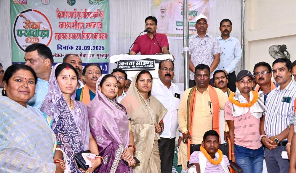 सेवा पखवाड़ा कार्यक्रम के अंतर्गत सूरजपुर जिले में दिव्यांगजनों एवं वरिष्ठजनों के लिए स्वास्थ्य परीक्षण, सम्मान एवं सहायक उपकरण वितरण शिविर का आयोजन किया गया। इस अवसर पर मुख्य अतिथि के रूप में महिला एवं बाल विकास मंत्री मती लक्ष्मी राजवाड़े शामिल हुईं।