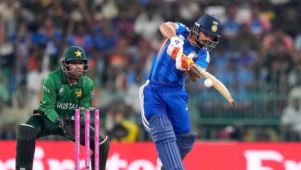 टी-20 वर्ल्ड कप में चिर-प्रतिद्वंद्वी भारत और पाकिस्तान के बीच मुकाबला अपने चरम रोमांच पर पहुंच गया है। कोलंबो के आर प्रेमदासा स्टेडियम में खेले जा रहे इस मैच में भारत ने पाकिस्तान के सामने जीत के लिए 176 रनों का चुनौतीपूर्ण लक्ष्य रखा है। टॉस हारकर पहले बल्लेबाजी करने उतरी भारतीय टीम की शुरुआत खराब रही और सलामी बल्लेबाज अभिषेक शर्मा बिना खाता खोले ही पवेलियन लौट गए। हालांकि, दूसरे छोर पर ईशान किशन ने आक्रामक रुख अपनाते हुए पाकिस्तान के गेंदबाजों की जमकर खबर ली। ईशान ने शानदार बल्लेबाजी करते हुए 77 रनों की पारी खेली और टीम को मुश्किल स्थिति से बाहर निकाला। मध्यक्रम में कप्तान सूर्यकुमार यादव ने भी 32 रनों का उपयोगी योगदान दिया, लेकिन वह उस्मान तारिक की गेंद पर सईम अयूब को कैच थमा बैठे।