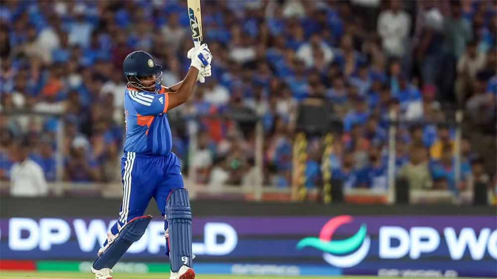 अभिषेक शर्मा ने 18 गेंदों में अर्धशतक पूरा किया, लेकिन 21 गेंदों में 52 रन बनाकर वे आउट हो गए। हालांकि, भारत को तब तक दमदार शुरुआत मिल चुकी थी। संजू सैमसन ने 33 गेंदों में अपना अर्धशतक पूरा किया, जो इस टी20 विश्व कप में उनका लगातार तीसरा अर्धशतक है। संजू फिर से 89 रनों की पारी खेलकर आउट हुए। ईशान किशन ने 23 गेंदों में अर्धशतक पूरा किया, लेकिन वे 54 रन की पारी खेलकर आउट हो गए। सूर्या का खाता नहीं खुला और हार्दिक ने सिर्फ 18 रन बनाए। शिवम दुबे ने 8 गेंदों में 26 रन बनाए।