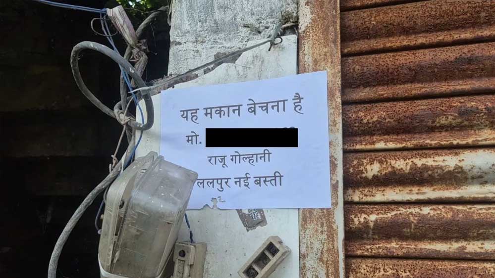 जबलपुर शहर के ग्वारीघाट थाना अंतर्गत ललपुर नई बस्ती में हालात इस कदर बिगड़ गए हैं कि लोग अपने घर बेचने को मजबूर हो रहे हैं. बस्ती में रहने वाले स्थानीय परिवारों ने घरों के बाहर “मकान बिकाऊ है” के पोस्टर और पंपलेट चिपकाना शुरू कर दिया है. बताया जा रहा है कि यहां करीब दो दर्जन से ज्यादा घरों पर इस तरह के पोस्टर लगाए गए हैं.