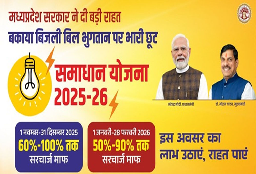 समाधान योजना 2025-26 का उद्देश्य 3 माह से अधिक अवधि के उपभोक्ताओं को बकाया विलंबित भुगतान के सरचार्ज पर छूट प्रदान करना है। यह योजना जल्दी आएं, एकमुश्त भुगतान कर ज्यादा लाभ पाएं के सिद्धांत पर आधारित है। इस योजना में उपभोक्ता को प्रथम चरण में एकमुश्त भुगतान करने पर सबसे अधिक लाभ हो रहा है जबकि द्वितीय चरण के दौरान छूट का प्रतिशत क्रमशः कुछ कम हो जाएगा। यह योजना दो चरणों में प्रारंभ होकर प्रथम चरण की शुरुआत 3 नवंबर 2025 से हुई जो कि 31 जनवरी 2026 तक चलेगी। इसमें बकाया बिल एकमुश्त जमा करने पर 60 से लेकर 100 प्रतिशत तक सरचार्ज माफ किया जा रहा। इसके बाद द्वितीय और अंतिम चरण शुरू होगा जो कि 01 फरवरी से 28 फरवरी 2026 तक चलेगा। दूसरे चरण में 50 से 90 फ़ीसदी तक सरचार्ज माफ किया जाएगा। समाधान योजना 2025-26 का लाभ उठाने के लिए उपभोक्ताओं को कंपनी के ऐप एवं कॉमन सर्विस सेंटर (सीएससी) तथा एमपी ऑनलाइन पर भी पंजीयन की सुविधा उपलब्ध है। पंजीयन के दौरान अलग-अलग उपभोक्ता श्रेणी के लिए पंजीयन राशि निर्धारित की गई है। घरेलू एवं कृषि उपभोक्ता कुल बकाया राशि का 10 प्रतिशत तथा गैर घरेलू और औद्योगिक उपभोक्ता कुल बकाया राशि का 25 प्रतिशत भुगतान कर पंजीयन कराकर योजना में शामिल होकर लाभ उठा सकते हैं। विस्तृत विवरण तीनों कंपनियों की वेबसाइटों पर भी देखा जा सकता है। साथ ही विद्युत वितरण केंद्र में पहुंचकर भी योजना के संबंध में जानकारी ले सकते हैं।