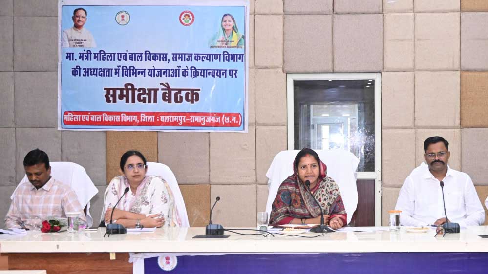 महिला एवं बाल विकास तथा समाज कल्याण मंत्री श्रीमती लक्ष्मी राजवाड़े ने बलरामपुर जिले के संयुक्त जिला कार्यालय सभाकक्ष में विभागीय समीक्षा बैठक ली। बैठक में उन्होंने महिला एवं बाल विकास और समाज कल्याण विभाग द्वारा संचालित योजनाओं की गहन समीक्षा कर अधिकारियों को जमीनी स्तर पर प्रभावी क्रियान्वयन और सतत मॉनिटरिंग सुनिश्चित करने के निर्देश दिए।