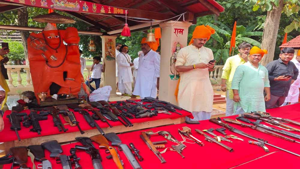 राजा भैया के शस्त्र पूजन का वीडियो अमिताभ ठाकुर ने पुलिस अधिकारियों को भेजा था। कहा था कि वीडियो में एक साथ सैकड़ो शस्त्र देखे जा सकते हैं। राजा भैया के लोगों ने इन्हें वैध हथियार होने की बात कही है लेकिन इसके बाद भी एक स्थान पर इतनी बड़ी संख्या में शस्त्रों के सार्वजनिक प्रदर्शन के मामले की जांच होनी चाहिए।