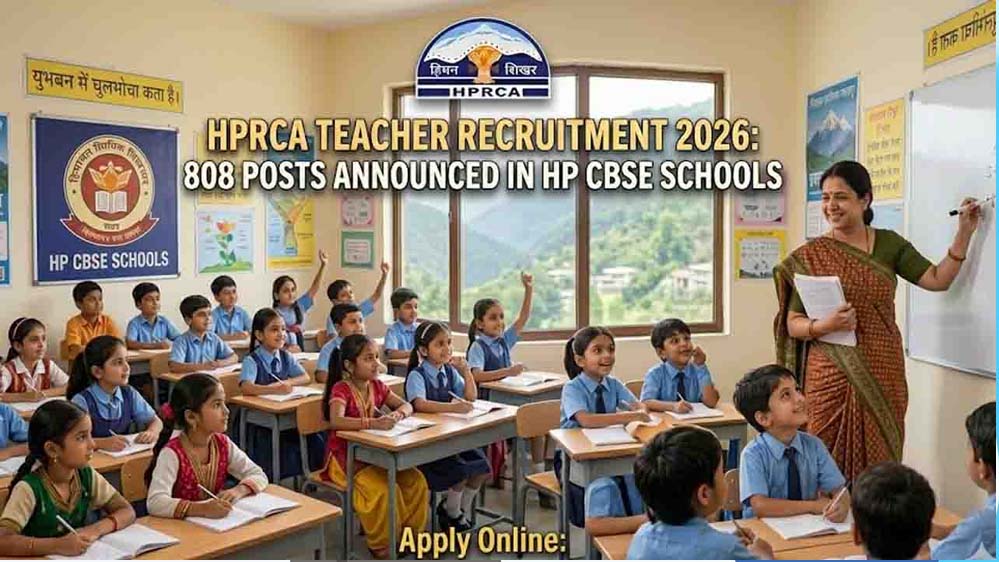सरकारी स्कूल में शिक्षक बनने की तैयारी कर रहे युवाओं के लिए अच्छी खबर है। हिमाचल प्रदेश राज्य चयन आयोग (HPRCA), हमीरपुर ने अपने सरकारी स्कूलों में शिक्षकों की भर्ती के लिए अधिसूचना जारी कर दी है। इस भर्ती में 808 शिक्षक पद हैं और नियुक्ति निश्चित मानदेय/समेकित राशि पर होगी। आवेदन प्रक्रिया 17 अप्रैल 2026 (सुबह 10:00 बजे) से शुरू होगी।