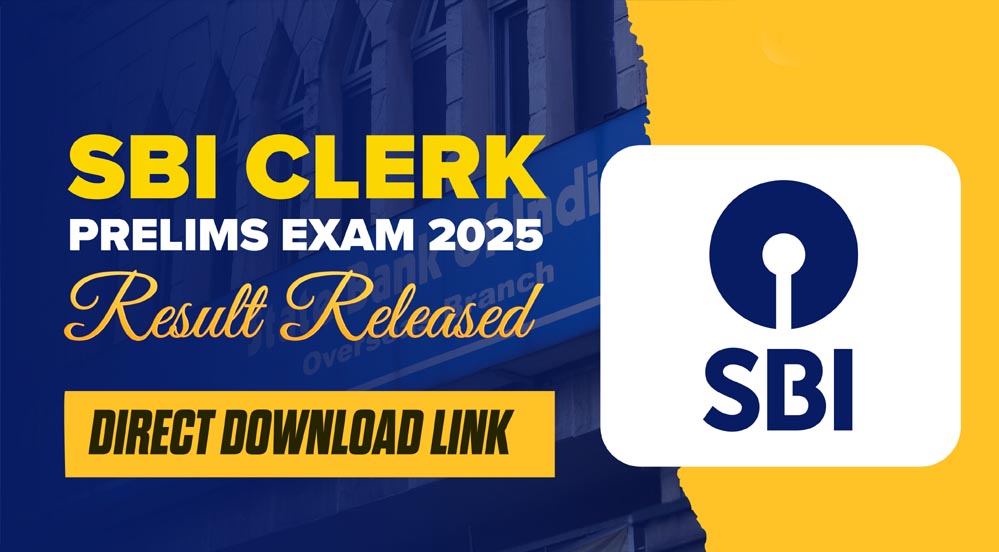 SBI Clerk Prelims Result 2025 OUT: भारतीय स्टेट बैंक (SBI) ने SBI क्लर्क प्रारंभिक परीक्षा 2025 के परिणाम घोषित कर दिए हैं. जो उम्मीदवार SBI क्लर्क (जूनियर एसोसिएट्स) प्रारंभिक परीक्षा के लिए उपस्थित हुए थे, वे अब आधिकारिक पोर्टल sbi.bank.in पर अपना परिणाम देख सकते हैं. जूनियर एसोसिएट्स (ग्राहक सहायता और बिक्री) के पद के लिए प्रारंभिक परीक्षा 20, 21 और 27 सितंबर, 2025 को आयोजित की गई थी. इस परीक्षा में 100 प्रश्न शामिल थे, जिसमें