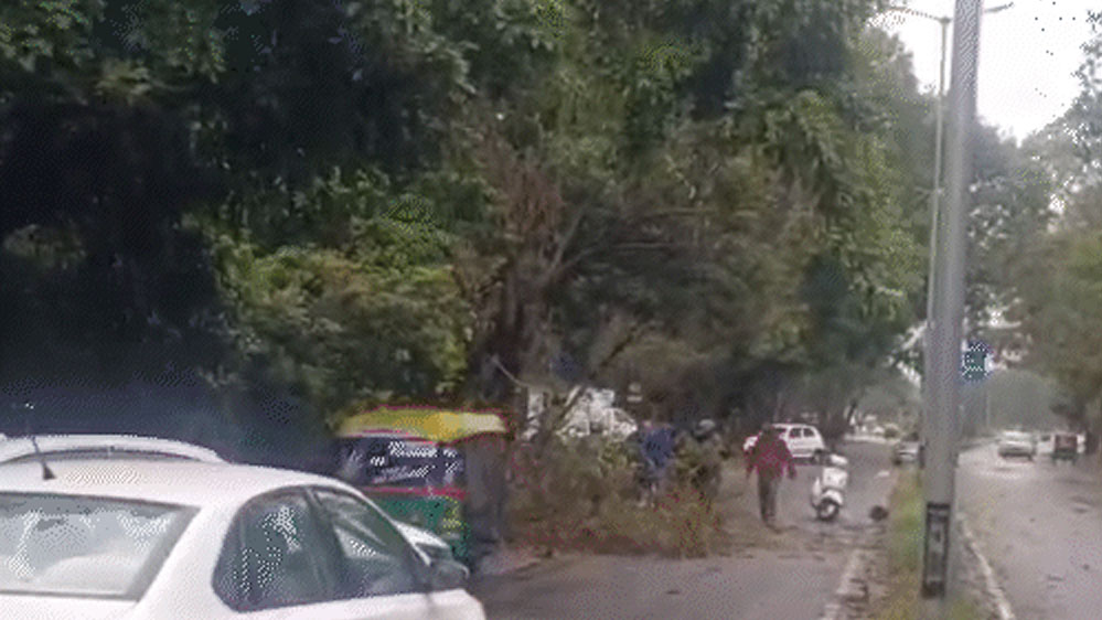चंडीगढ़ के सेक्टर 32 में चलती स्कूटी पर पेड़ गिर गया। जिससे स्कूटी पूरी तरह से दब गई और युवक भी जख्मी हो गया। पार्षद प्रेमलता ने बताया कि युवक ने हेलमेट पहना हुआ था, इस वजह से उसकी जान बच गई। पार्षद ने कहा कि उन्होंने निगम अफसरों को इसकी टहनी हटाने को कहा था लेकिन नियमों की दुहाई देकर उन्होंने कार्रवाई नहीं की।
