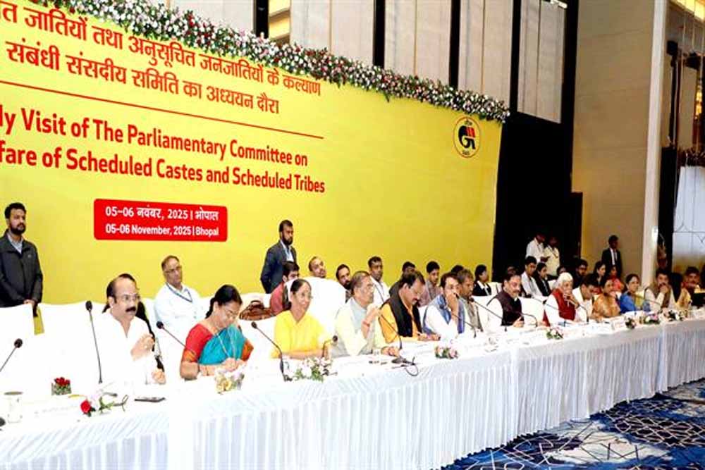 राज्य शासन की ओर से अपर मुख्य सचिव श्री अशोक बर्णवाल एवं पुलिस महानिदेशक श्री कैलाश मकवाना ने संसदीय समिति के सदस्यों को शासन के निर्णयों एवं कार्य योजनाओं से अवगत कराया। समिति के सदस्यों ने मुख्य रूप से अनुसूचित जाति और जनजातियों के विकास की योजनाओं, जल जीवन मिशन के कार्यों, केन्द्रीय बजट के व्यय की स्थिति, विभिन्न विभागों में पदों की स्थिति एवं प्रतिनिधित्व, रोजगार, स्वास्थ्य एवं शिक्षा संबंधी मुद्दे, संविधान के अनुच्छेद 275 के अंतर्गत दिए बजट के उपयोग, वन अधिकार, पेसा कानून के क्रियान्वयन, अनुसूचित जाति/जनजाति के विरुद्ध अपराध की रोकथाम संबंधी कानून पर चर्चा की। समिति को म.प्र. में योजनाओं के क्रियान्वयन संबंधी और प्रगति से अवगत कराया गया।