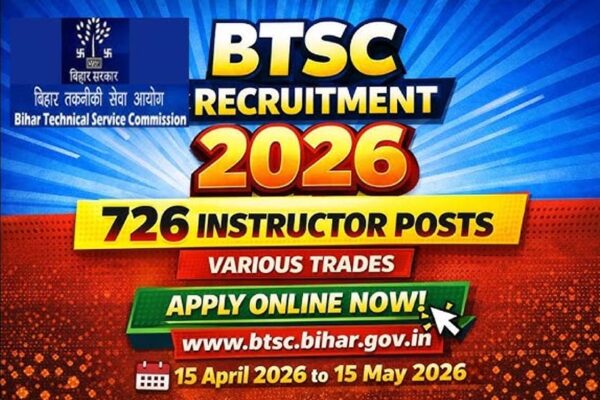 बीटीएससी भर्ती 2026: 726 इंस्ट्रक्टर पदों के लिए आवेदन जारी, अंतिम तिथि 15 मई