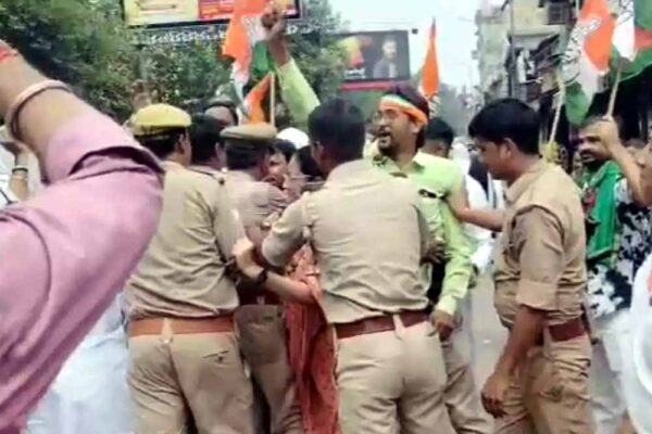 सीएम योगी को ज्ञापन देने जा रहे कांग्रेसी, पुलिस ने रोका तो सड़क पर बवाल
