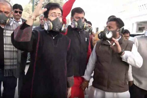 दिल्ली की हवा पर घमासान: प्रदूषण मुद्दे पर विधानसभा परिसर में उतरे ‘आप’ विधायक
