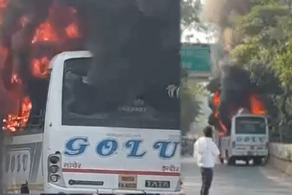 इंदौर: टकराने के बाद बस में लगी आग, फायर ब्रिगेड ने काबू पाया, यात्री सुरक्षित