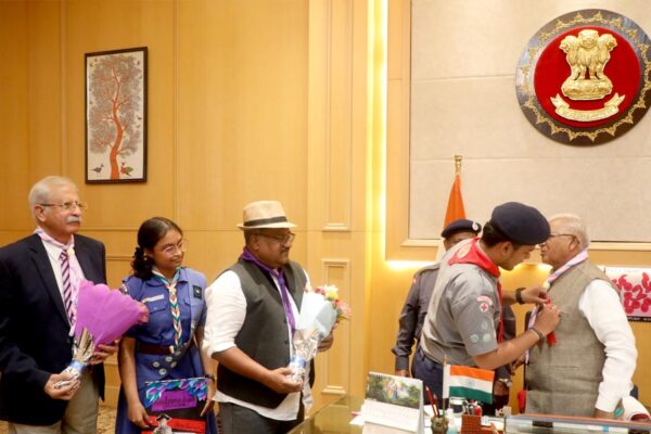राज्यपाल पटेल बने सम्मानित, स्काउट्स एवं गाइड्स ने पहनाया बैज और स्कार्फ
