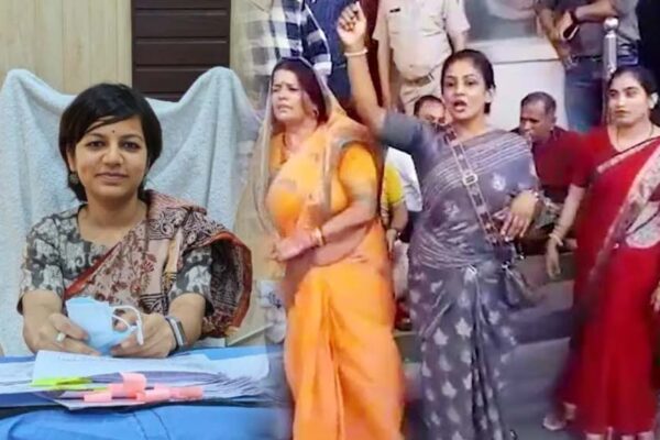 निगम कमिश्नर फंसीं 2 घंटे, पार्षद के बेटे की शादी का होर्डिंग हटाने पर स्थानीय नेताओं का हंगामा