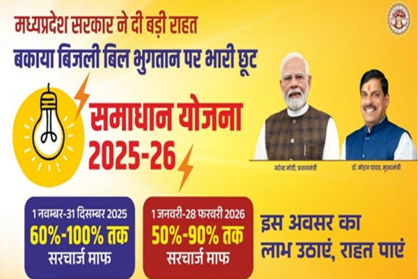 समाधान योजना में अब तक 05 लाख 58 हजार से अधिक उपभोक्ताओं को मिली सरचार्ज में छूट 553 करोड़ 90 लाख मूल राशि हुई जमा, 267 करोड़ 70 लाख का सरचार्ज हुआ माफ दूसरे चरण में 28 फरवरी तक एकमुश्त जमा करने पर सरचार्ज में मिलेगी 90 प्रतिशत तक की छूट भोपाल मध्यप्रदेश सरकार की…