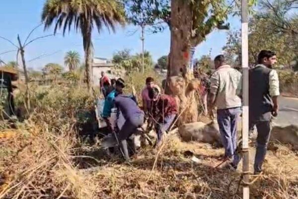 पुलिस पीछा बना काल: गौवंश तस्करी के दौरान पिकअप पलटी, 3 गायों की मौत, तस्कर मौके से फरार
