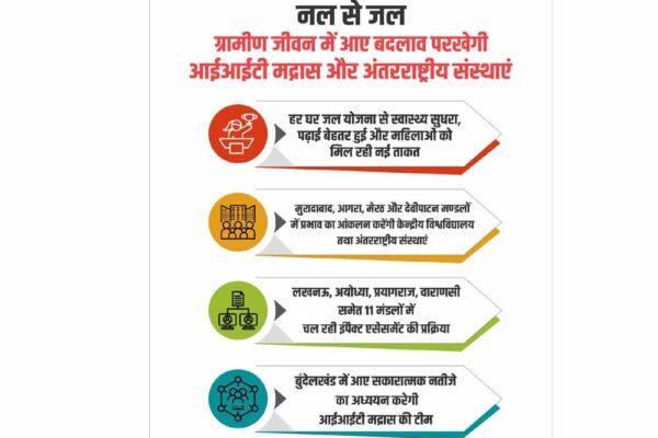 हर घर जल योजना से स्वास्थ्य सुधरा, पढ़ाई बेहतर हुई और महिलाओं को मिली नई ऊर्जा लखनऊ, अयोध्या, प्रयागराज, वाराणसी समेत 11 मंडलों में चल रही इंपैक्ट असेसमेंट की प्रक्रिया मुरादाबाद, आगरा, मेरठ और देवीपाटन मण्डलों में भी जल्द किया जाएगा प्रभाव का आकलन बुंदेलखंड में आए सकारात्मक नतीजों का अध्ययन करेगी आईआईटी मद्रास की…