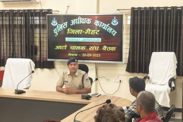 आगामी त्यौहारों के दौरान माता के दर्शन को आने वाले श्रद्धालुओं से सभ्यता पूर्वक व्यवहार करने की दी गई समझाइश। मैहर पुलिस मुख्यालय भोपाल द्वारा संपूर्ण मध्यप्रदेश में सड़क सुरक्षा पखवाड़ा एवम ट्रैफिक नियमों का पालन न करने वालों पर चालानी कार्यवाही की मुहीम चलाई जा रही है, साथ ही सड़क सुरक्षा जागरुकता के प्रयास…