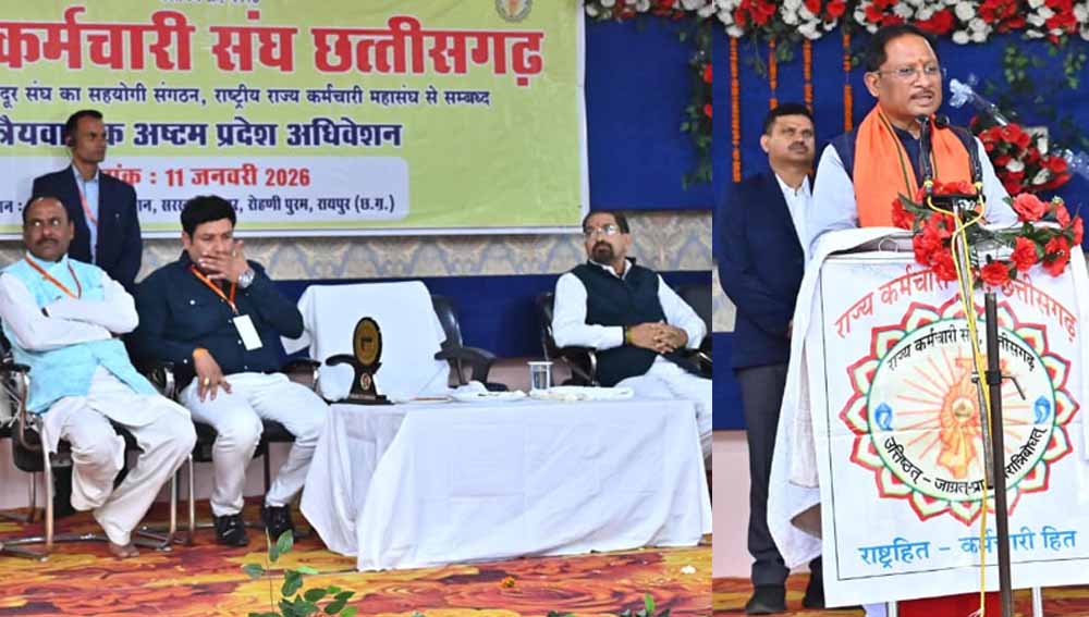 कर्मचारी शासन-प्रशासन की रीढ़ होते हैं और उनकी ईमानदारी, कर्मठता तथा संवेदनशीलता से ही सरकार की योजनाएं, नीतियां और निर्णय वास्तविक रूप में धरातल पर उतरते हैं। छत्तीसगढ़ का प्रशासनिक ढांचा आप सभी की मेहनत, निष्ठा और अनुशासन के कारण ही प्रभावी ढंग से कार्य कर पा रहा है। मुख्यमंत्री विष्णु देव साय ने राजधानी रायपुर के रोहिणीपुरम स्थित सरस्वती शिक्षा संस्थान परिसर में राज्य कर्मचारी संघ, छत्तीसगढ़ द्वारा आयोजित त्रैवार्षिक अष्टम प्रदेश अधिवेशन को संबोधित करते हुए यह बात कही।