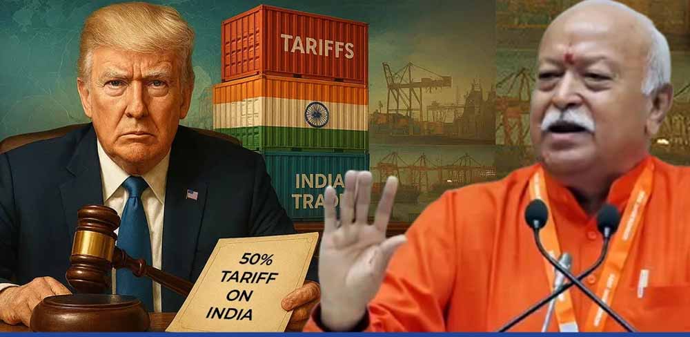 टैरिफ और रूस से तेल आयात के चलते भारत और अमेरिका के बीच संबंधों में गिरावट आई है। अमेरिकी राष्ट्रपति ट्रंप ने भारत पर 50 फीसदी टैरिफ लगा दिया है, जिसके चलते दुनियाभर में उनकी किरकिरी हो रही है। इस बीच, राष्ट्रीय स्वंयसेवक संघ (RSS) प्रमुख मोहन भागवत ने अमेरिका का बिना नाम लिए हुए टैरिफ को लेकर उनपर निशाना साधा है। उन्होंने कहा है कि दुनिया में लोगों को डर लगता है कि ये बड़ा हो जाएगा तो मेरा क्या होगा?