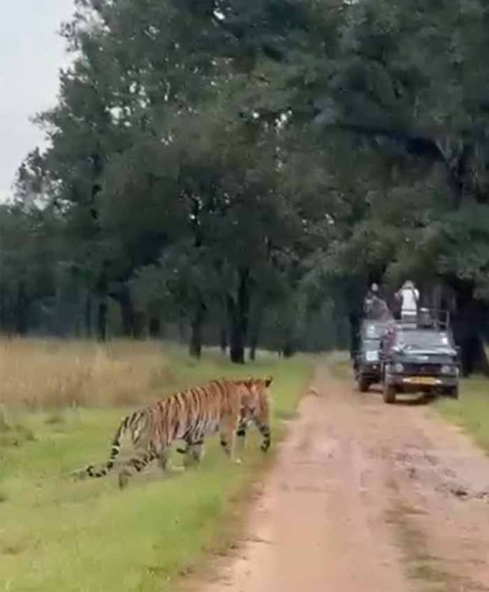 एक अक्टूबर से कान्हा टाइगर रिजर्व के गेट सैलानियों के लिए खोल दिए गए हैं। इसके बाद से बड़ी संख्या में पहुंच रहे पर्यटकों को बाघ के दीदार हो रहे हैं। बाघ-बाघिन से जुड़ा एक वीडियो गुरुवार को इंटरनेट मीडिया पर बहुप्रसारित है। इसमें वयस्क बाघ-बाघिन घास के मैदान से निकलकर सैलानियों की जिप्सी के सामने आते हैं।