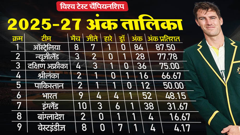 विश्व टेस्ट चैंपियनशिप 2025-27 अंक तालिका